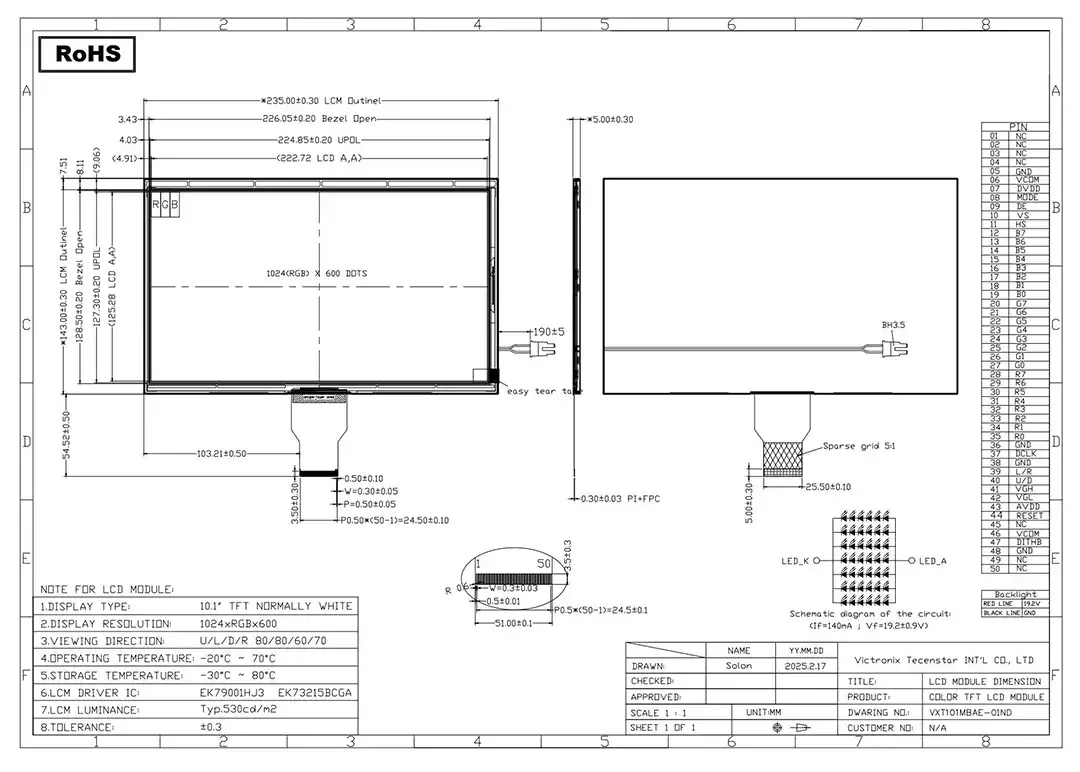 ماژول TFT را می توان در همه جای زندگی یافت ، چه چیزی باعث می شود TFT Victronix 10.1 اینچ به طور معمول ماژول سفید متفاوت از سایر تولید کنندگان باشد؟ در ابتدا ، روشنایی معمولی 530 CD/m² را با یکنواختی خوب (75 ≥) برای مشاهده روشن در شرایط مختلف روشنایی ارائه می دهد. ثانیاً ، این نه تنها برای مقاومت در برابر عملکرد/ذخیره سازی درجه حرارت بالا/با دمای پایین ، دوچرخه سواری دما و شرایط گرمای مرطوب ، طراحی و آزمایش شده است تا بتواند از -20 درجه سانتیگراد تا +70 درجه سانتیگراد قابل اطمینان عمل کند ، با تحمل ذخیره سازی از -30 درجه سانتیگراد تا +80 درجه سانتیگراد ، بلکه از یک رابط استاندارد 24 بیتی RGB برای ساده سازی یکپارچه سازی با کنترل و سیستم های مشترک استفاده می کند. اینها باعث می شود عملکرد کارآمد داشته باشد. علاوه بر این ، از LED های 7x6 سفید با طول عمر معمولی 50،000 ساعت (تا 50 ٪ روشنایی) استفاده می کند و اطمینان می دهد که می توان از آن برای وضوح و ساعات استفاده در شرایط مختلف روشنایی استفاده کرد.