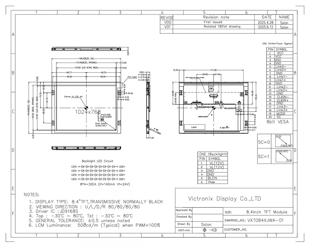 TFT LCD نوعی نمایشگر کریستال مایع است که از فناوری ترانزیستور فیلم نازک برای افزایش کیفیت تصویر استفاده می کند و در زندگی روزمره کاربردهای بی شماری دارد. به عنوان یک تولید کننده و تأمین کننده ماژول TFT حرفه ای در چین ، چه چیزی باعث می شود Victronix 8.4 اینچ 1024 × 768 IPS TFT LCD متفاوت از سایر تولید کنندگان باشد؟ در مرحله اول ، این روش روشنایی معمولی از 500 CD/m² ، زاویه دید 85 درجه از همه جهت ها و نسبت کنتراست 1500: 1 را ارائه می دهد ، و اطمینان از خوانایی عالی از زوایای مختلف دارد. ثانیا ، این یک واحد نور پس زمینه را با استفاده از 32 LED سفید با طول عمر معمولی 50،000 ساعت (به 50 ٪ روشنایی اولیه) ادغام می کند ، و از دید واضح در تمام شرایط روشنایی اطمینان می دهد. علاوه بر این ، از رابط LVDS با ESD Protection و کنترلر JD9168S پشتیبانی می کند. علاوه بر این ، از آزمایش دقیق محیطی ، از جمله شوک حرارتی (-30 درجه سانتیگراد +80 درجه سانتیگراد) ، ذخیره رطوبت (60 درجه سانتیگراد/90 ٪ RH) و لرزش مکانیکی عبور می کند ، و اطمینان حاصل می کند که می تواند یکپارچه در یک محدوده دمای گسترده (-30 درجه سانتیگراد تا +80 درجه سانتیگراد) کار کند.