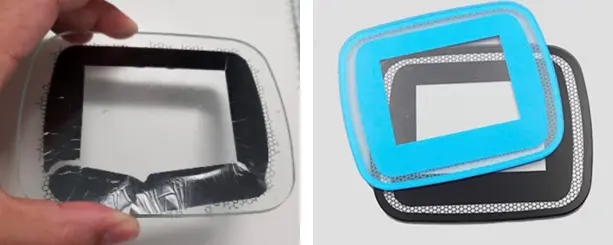 کاهش نور/تابش نور ولگرد: لبه لنزهای پوشش معمولاً باید با جوهر مرزی سیاه یا دیگر (BMV) چاپ شود تا سیم کشی داخلی ، اجزای ، لایه چسب و بهبود کنتراست بصری صفحه را پنهان کند. جوهر ضد UV معمولاً یک به روزرسانی کاربردی این جوهر مرزی است.